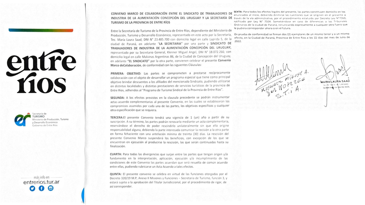 Convenios Resolución 860/22 Acuerdo con la Federación de Industrias de Productos Alimenticios y Afines Convenio Anglo-Ingles Convenio DR Computers Acuerdo Secretaría de Turismo de Entre Ríos Acuerdo Hoteleros y Gastronómicos Acuerdo Hoteleros y Gastronómicos, Parte 2 Acuerdo Confiteria Ris